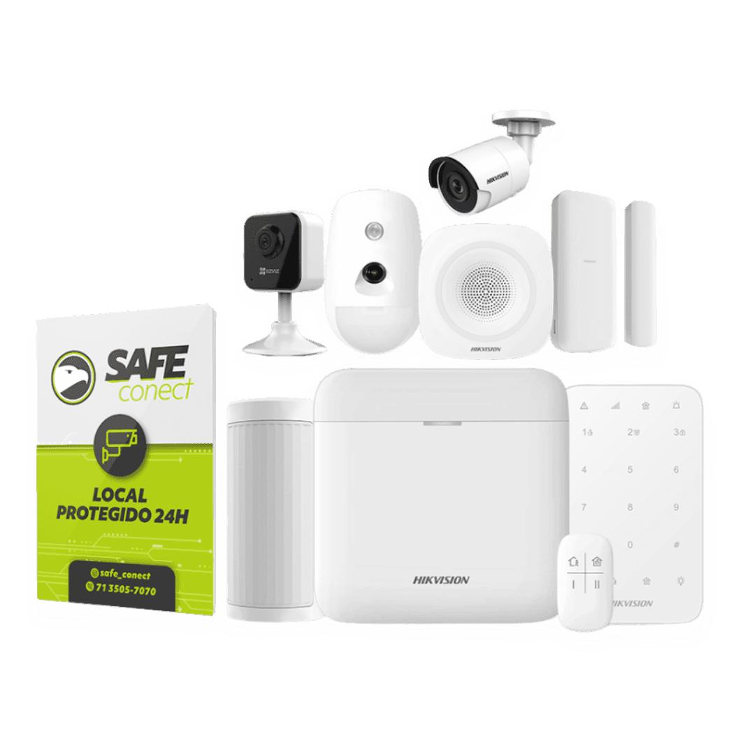 Sim! Você tem acesso total em tempo real através do app Safe Conect — visualiza câmeras, recebe notificações e controla seu sistema de onde estiver.